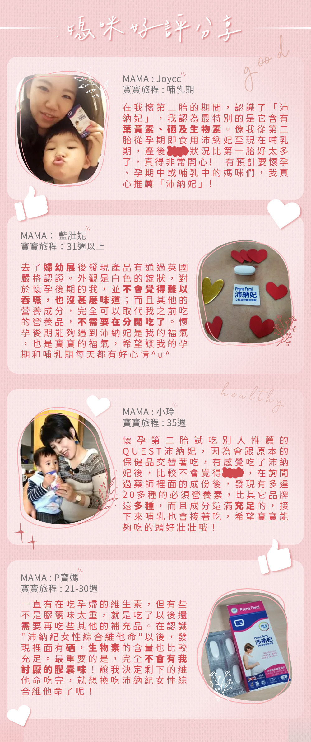 | ● | 備孕、懷孕及哺乳期全孕程適用 |