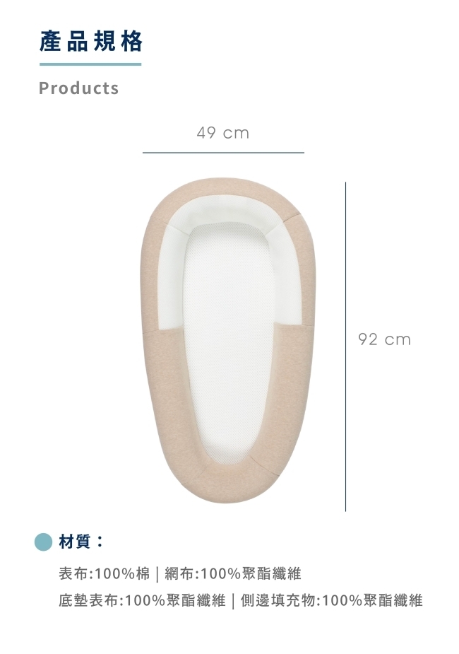 底墊表布:100%聚脂纖維、側邊填充物:100%聚脂纖維