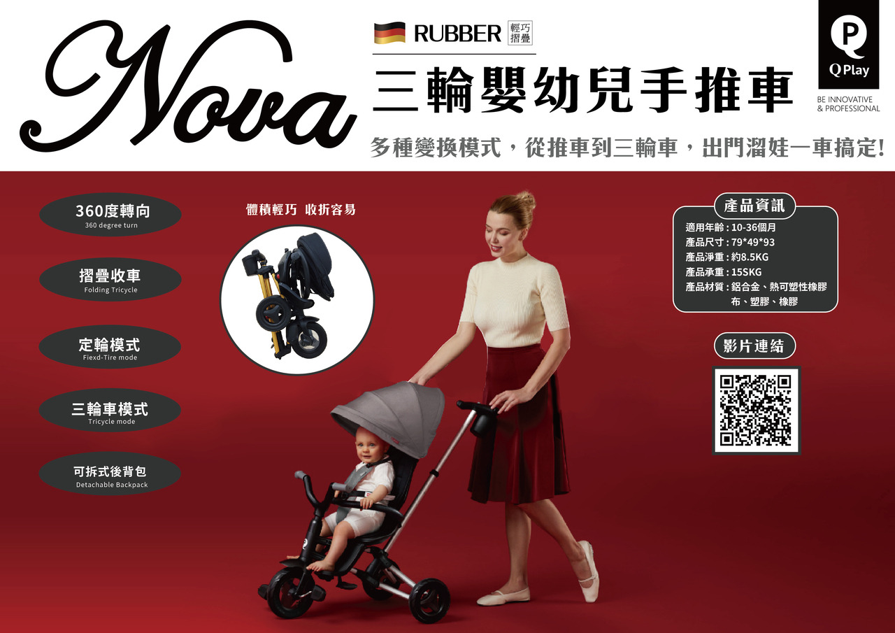 超吸睛的NOVA Rubber 兒童推車 "推車界的變形金剛"市面上最多功能的推車!多種變換模式,從推車到三輪車,一車搞定!