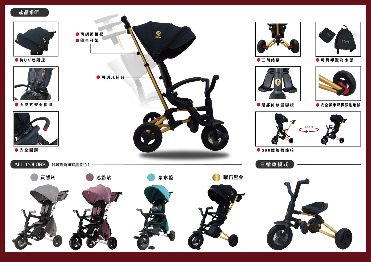四種模式簡易切換 : 親子互動模式 / 一般推行模式 / 輔助推行模式 / 三輪車模式