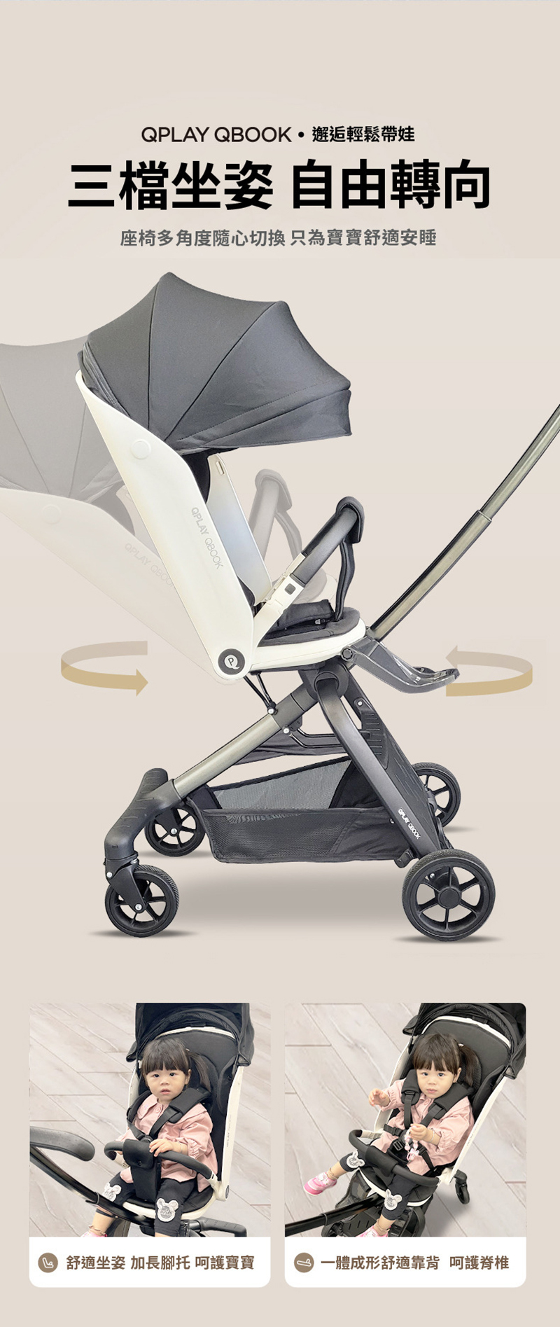 座椅可自由轉向、三檔角度隨心切換。箱式收車,厚度僅12cm,外出輕鬆攜帶,天幕頂棚,高效遮陽抗強光。