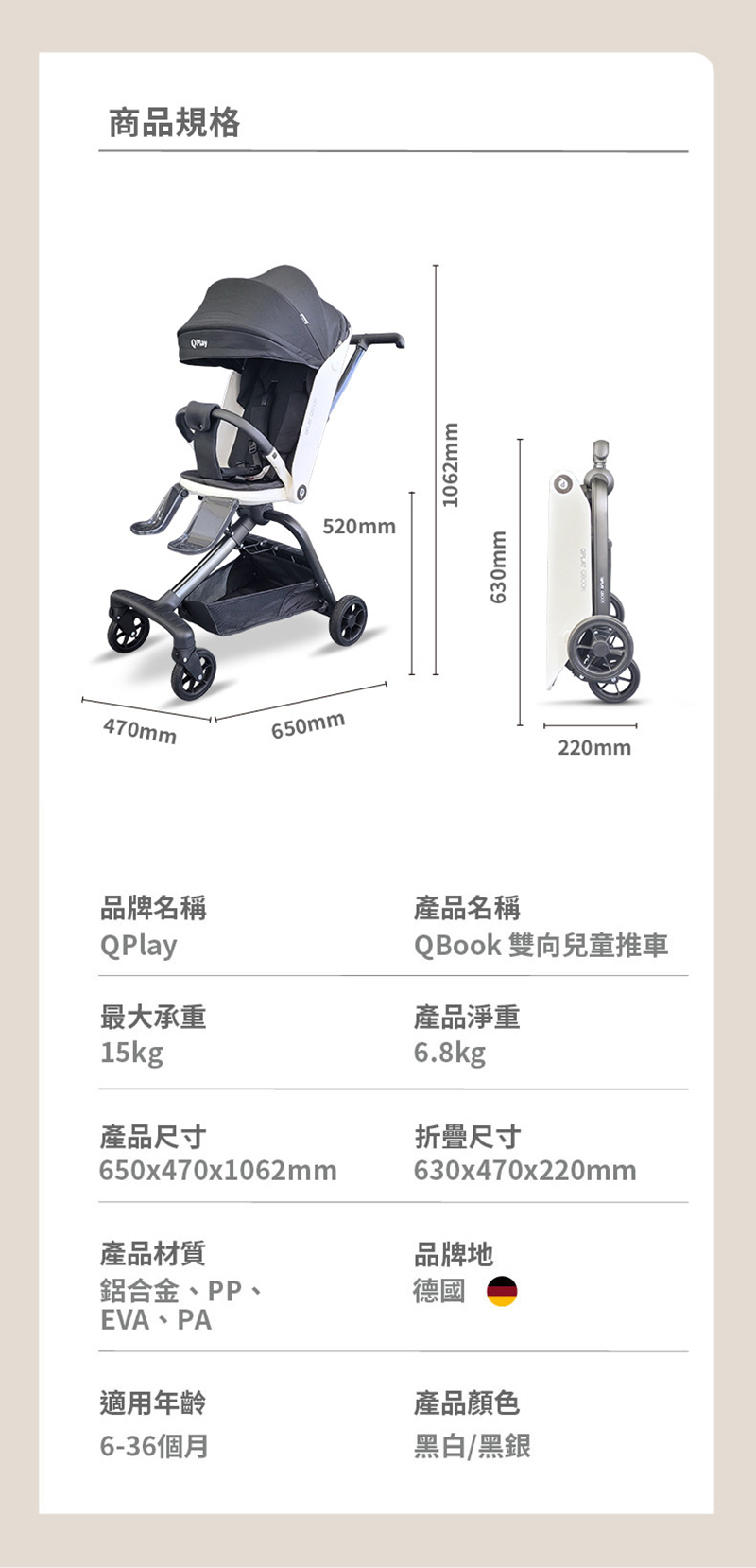 展開尺寸  ➤ 65 x 47 x 106.2 cm