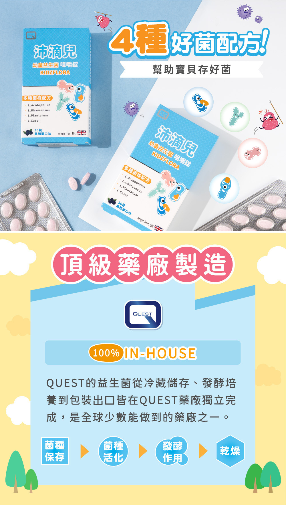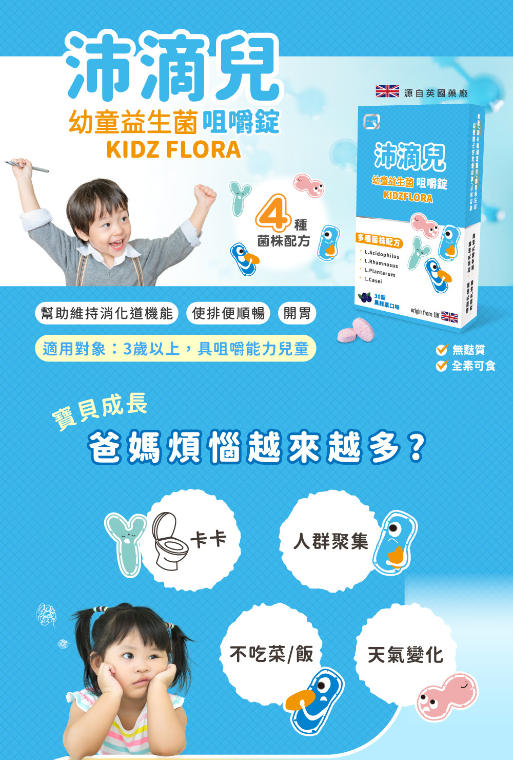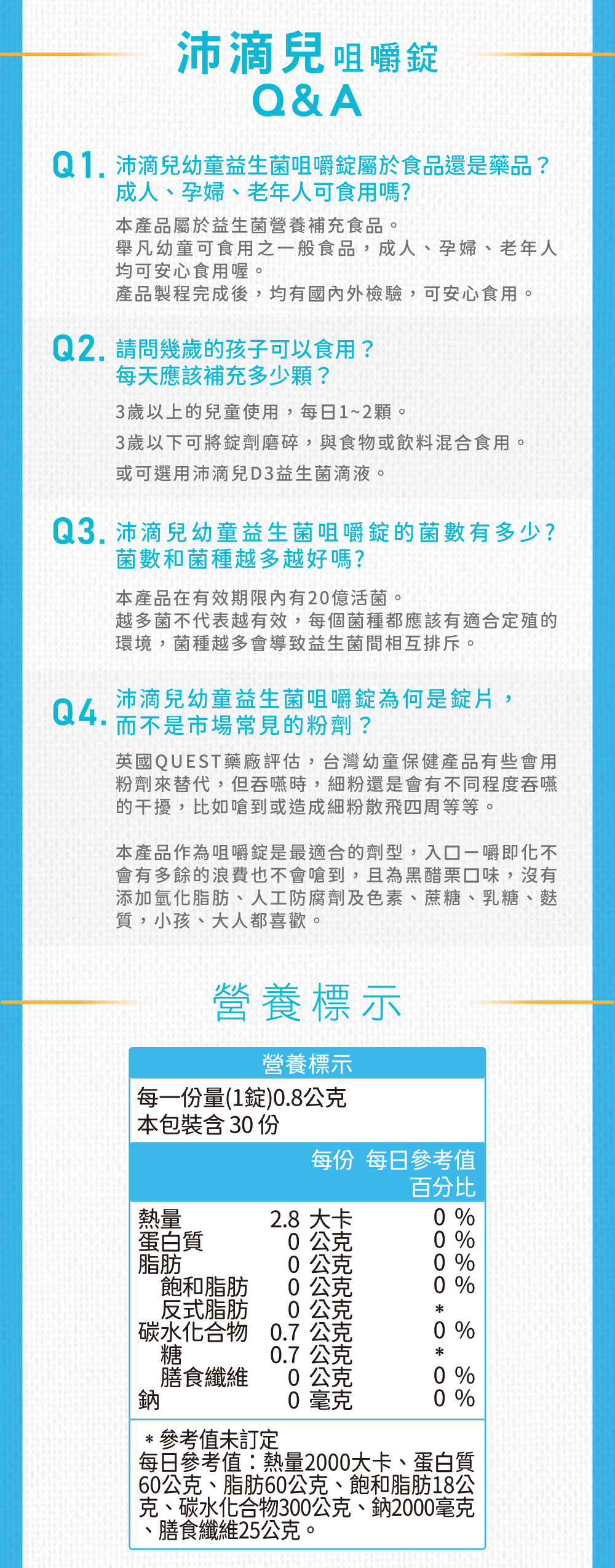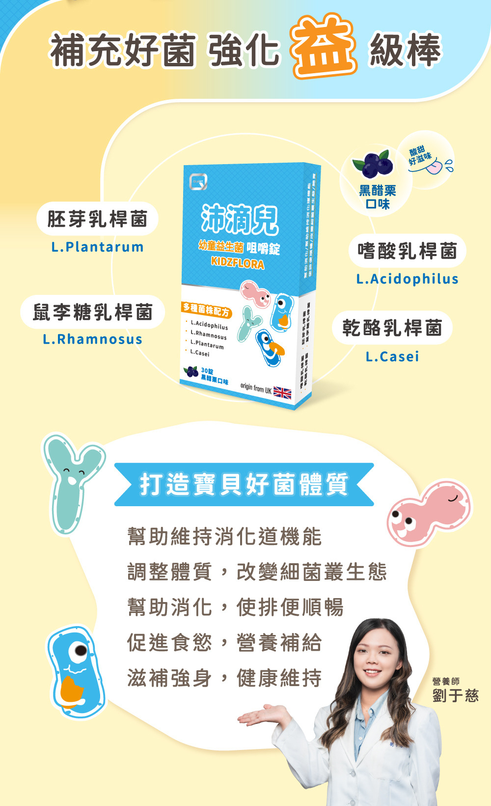 | ● | 每日1~2錠,打造寶貝好菌體質、好吃好補充 |