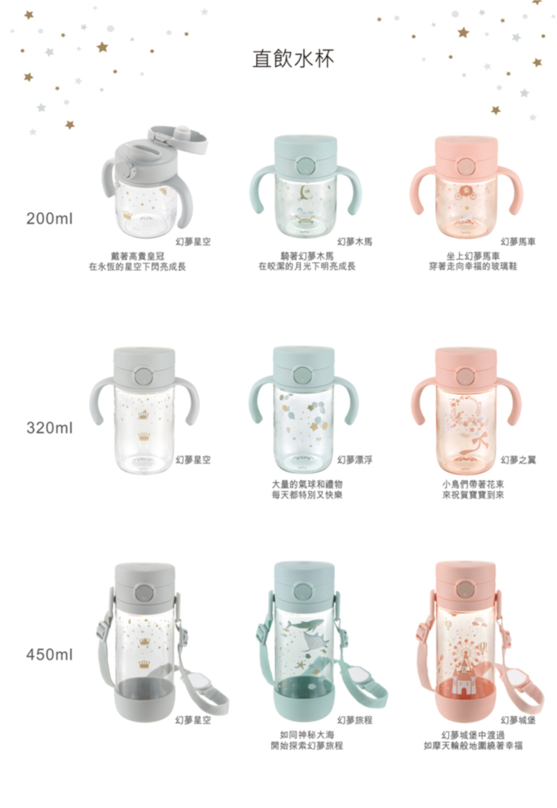 TRITAN透明材質。超輕量,超透明 特殊獨創吸口,輕易含住嘴不易落 |