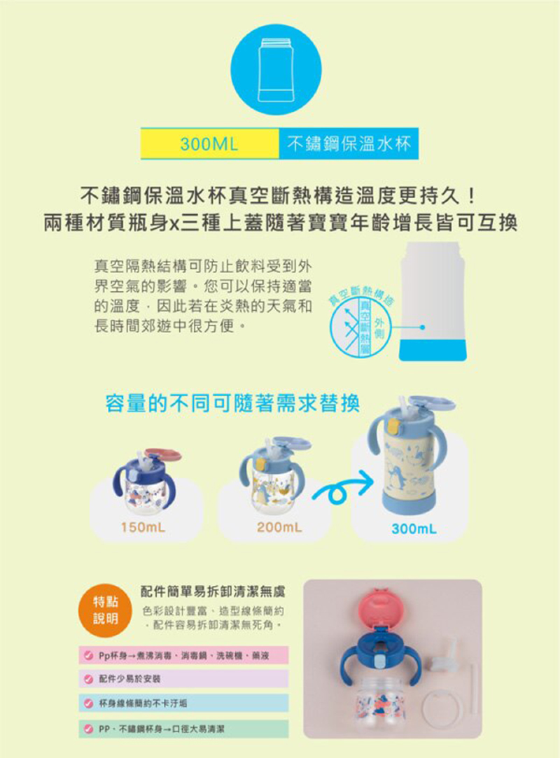 Richell 利其爾 不鏽鋼吸管保溫水杯300ml