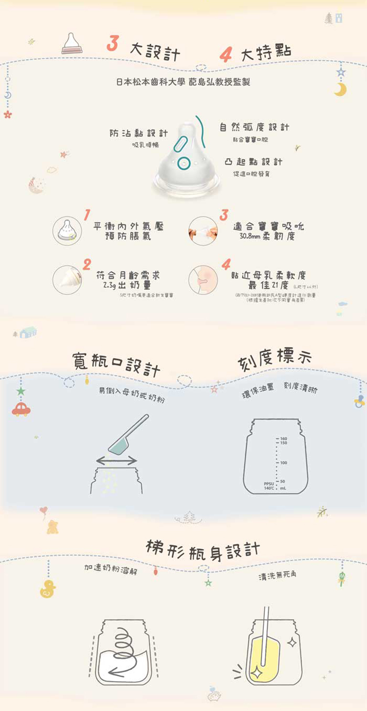 款式    ➤ 160ml-奶嘴-S號圓孔、240ml-M號Y字型、300ml-L號Y字型