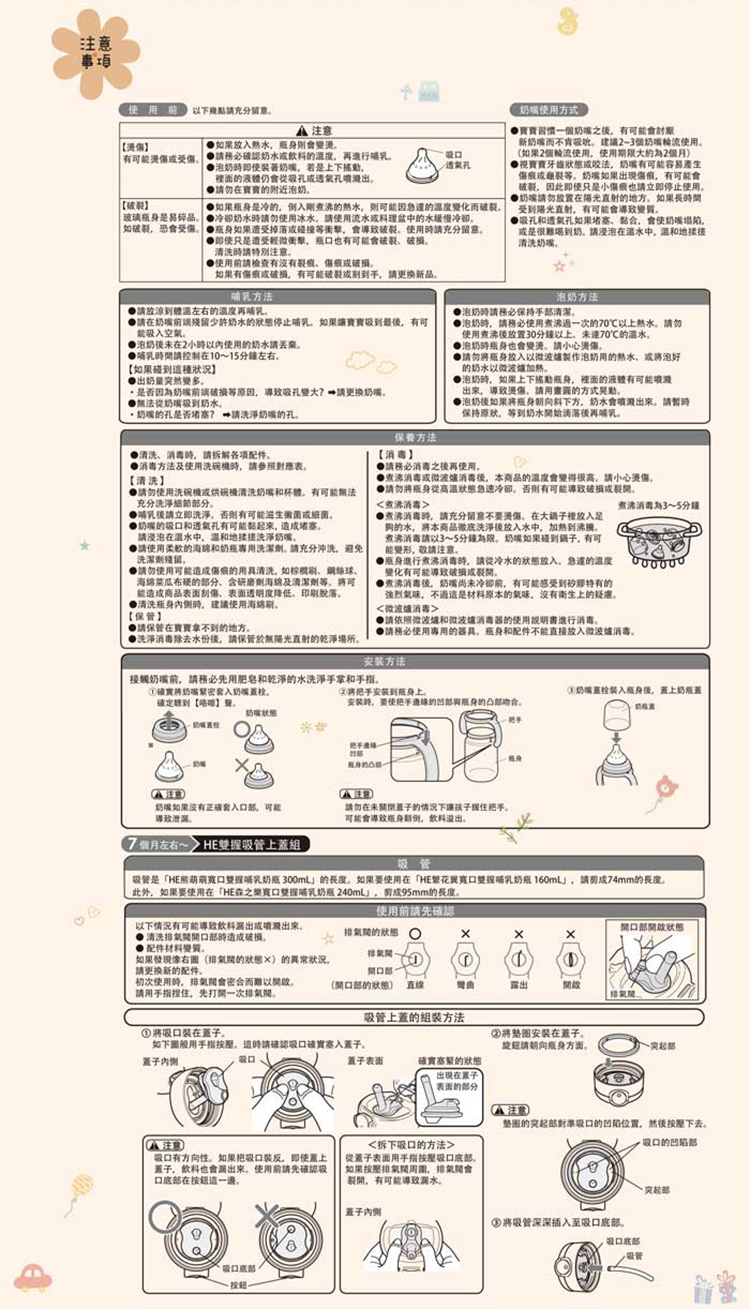 材質    ➤ 奶嘴-矽膠 耐熱140℃、把手/瓶蓋-聚丙烯 耐熱120℃、瓶身-PPSU 140℃