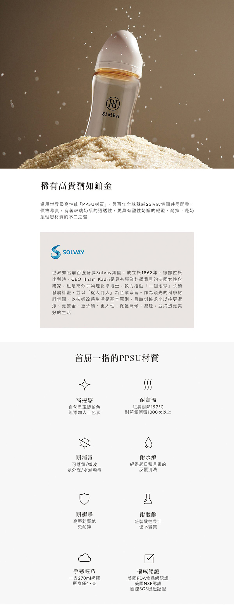 奶瓶身:聚亞苯基碸(耐熱-20℃~+197℃)