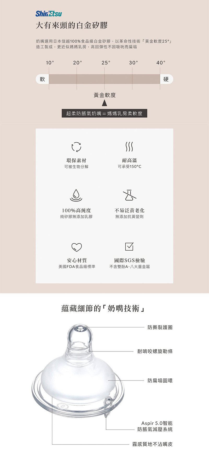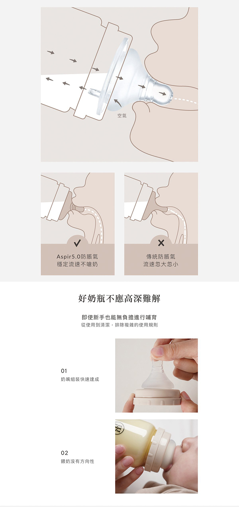 Aspir5.0智能防脹氣減壓系統,防嗆奶、防溢奶、防脹氣。 |