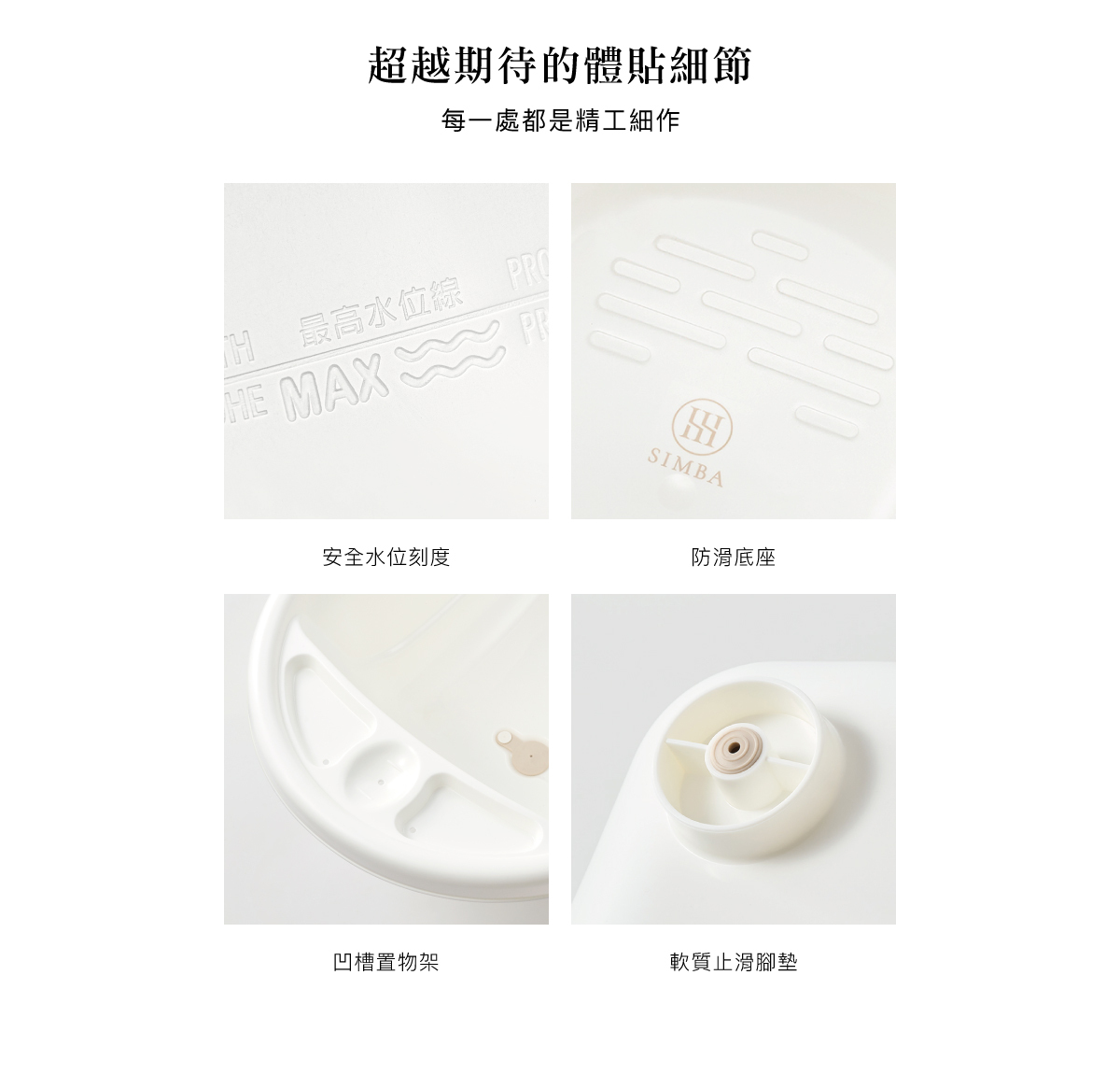 貼心水位刻度標示,防滑設計、澡盆不滑溜 |