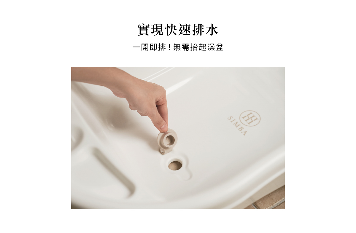 快掀式排水閥,無需抬起澡盆就可快速排水 |