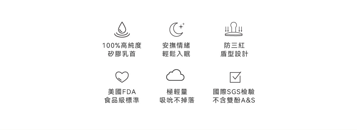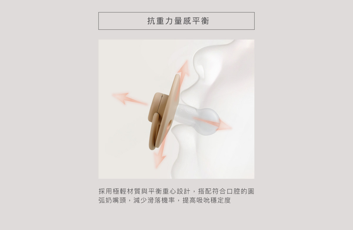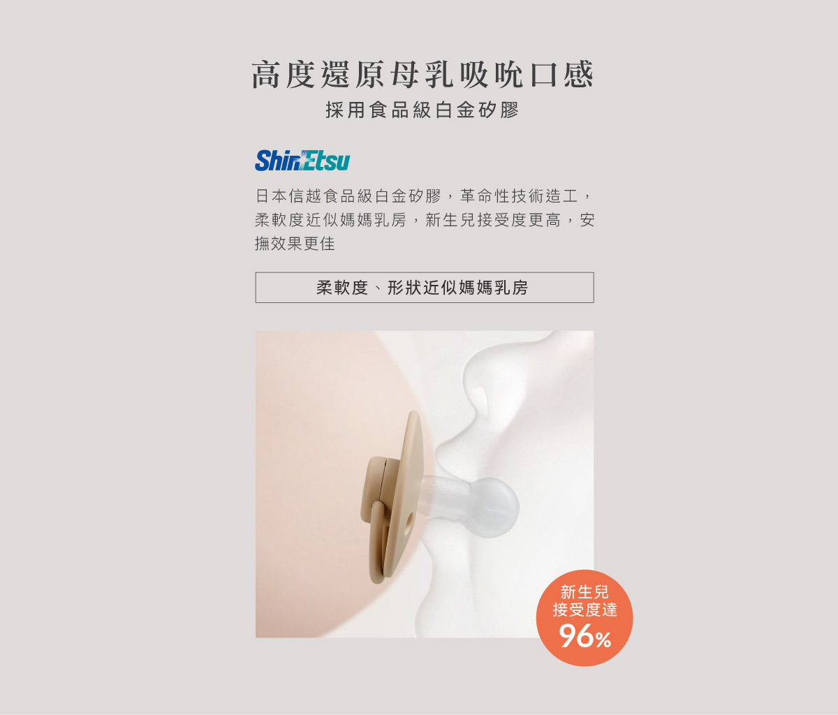 極輕量7.5g,嚴選日本信越食品級白金矽膠,高度還原母乳口感 |
