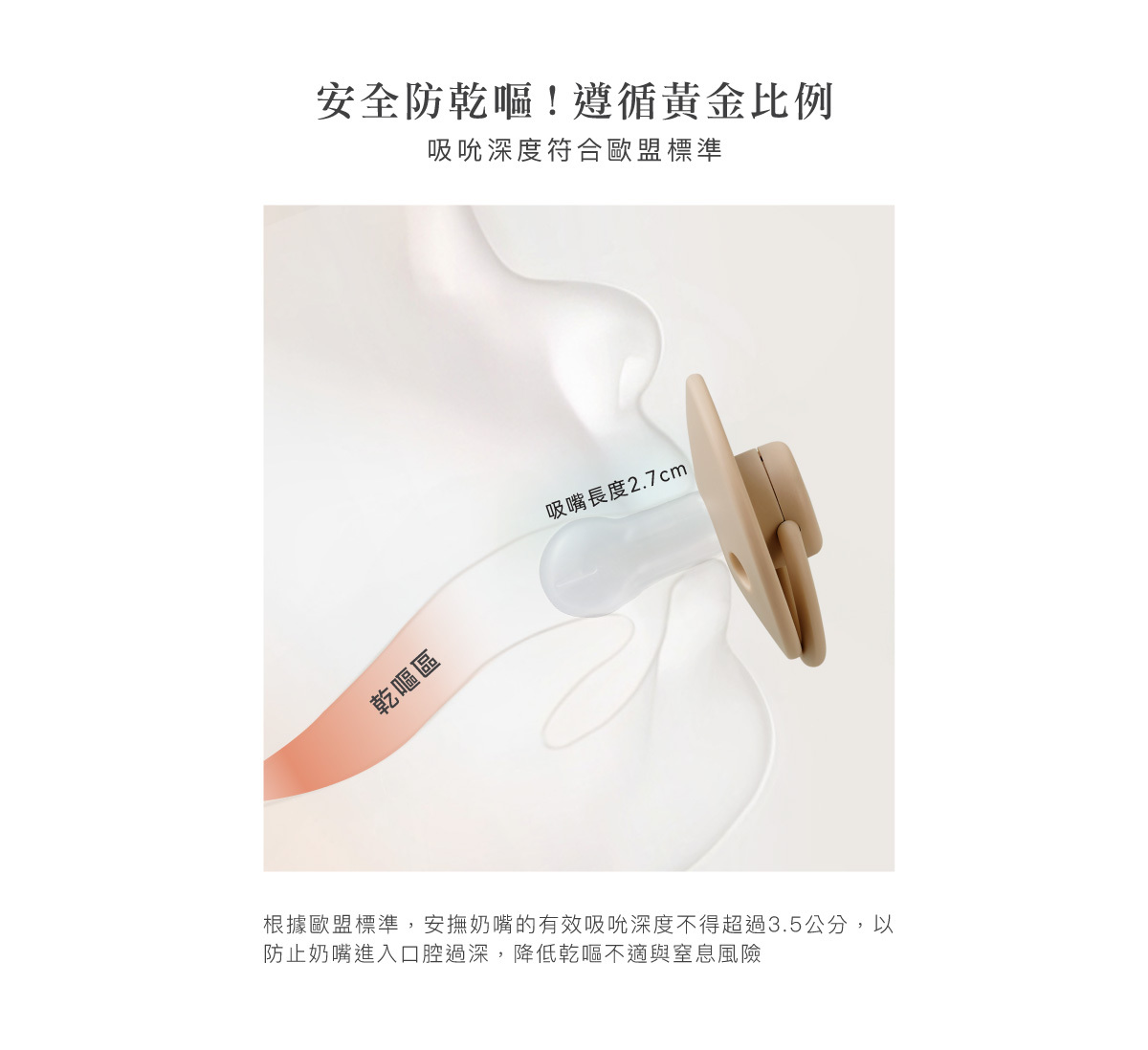 完全貼合口腔,減少齒列壓力,吸吮深度符合歐盟標準 |