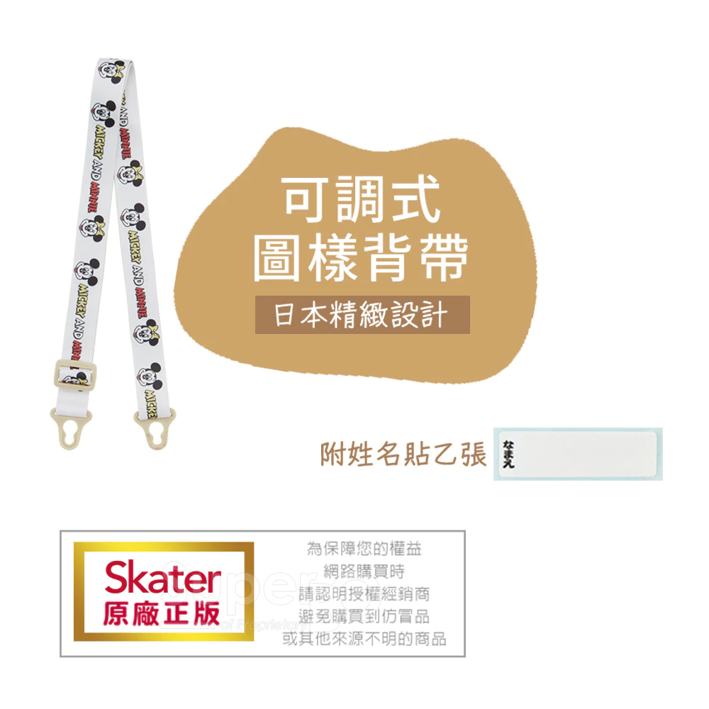 內附可調整式背帶及姓名貼紙一張 |