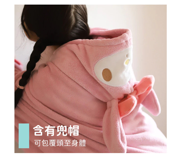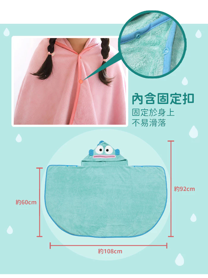 含有兜帽,可將頭至身體包覆住,亦可做兒童包巾 |