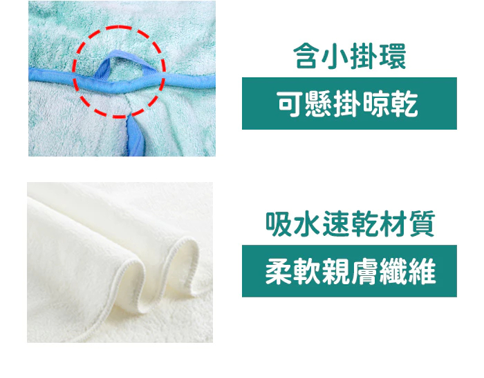柔軟親膚纖維,吸水快乾擦澡衣 |