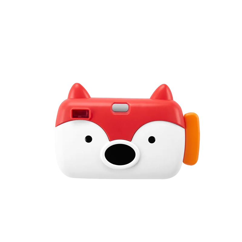 可愛的狐狸造型相機裝載著特色底片、逼真的快門聲音、閃光燈光及寶寶感統鏡…等各項有趣功能~只需按下狐狸的耳朵,即可啟動拍照!