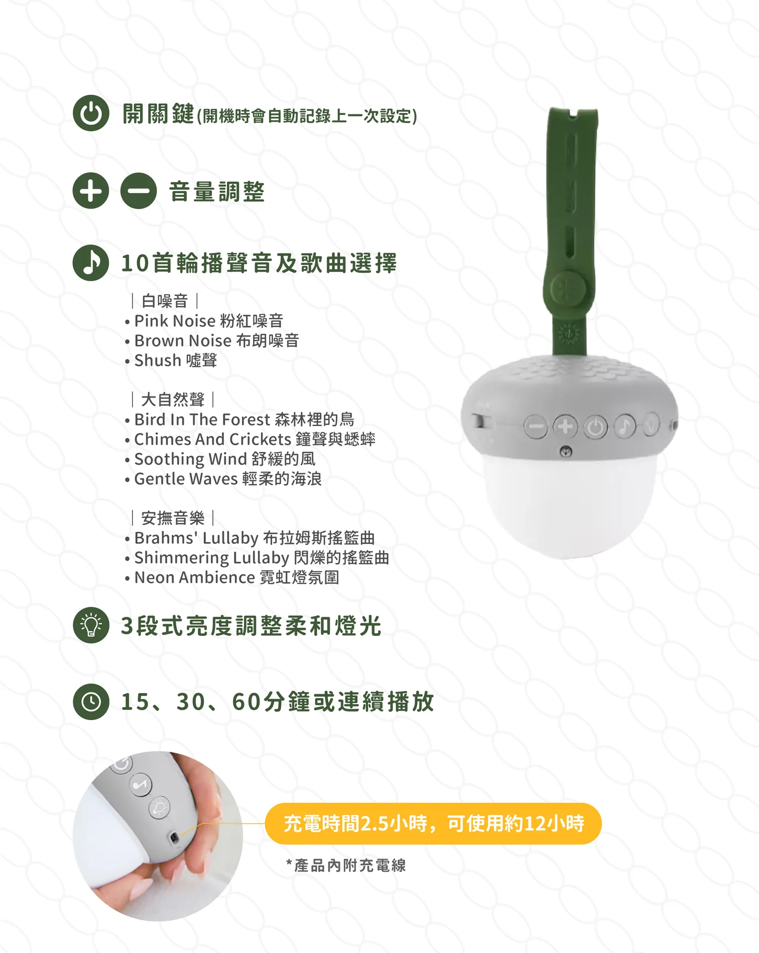 3首舒緩歌曲、4種大自然聲音、3種白噪音 |