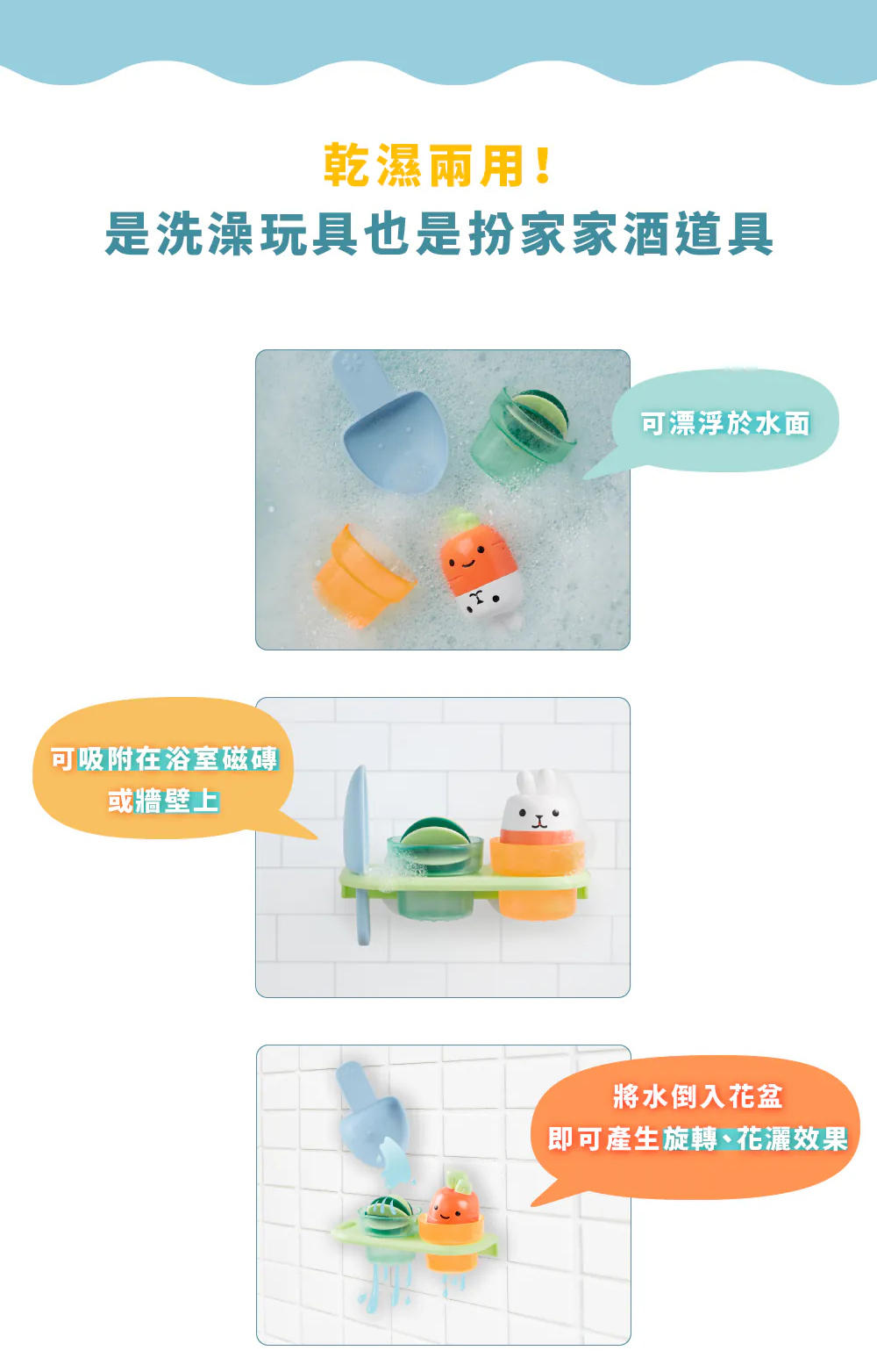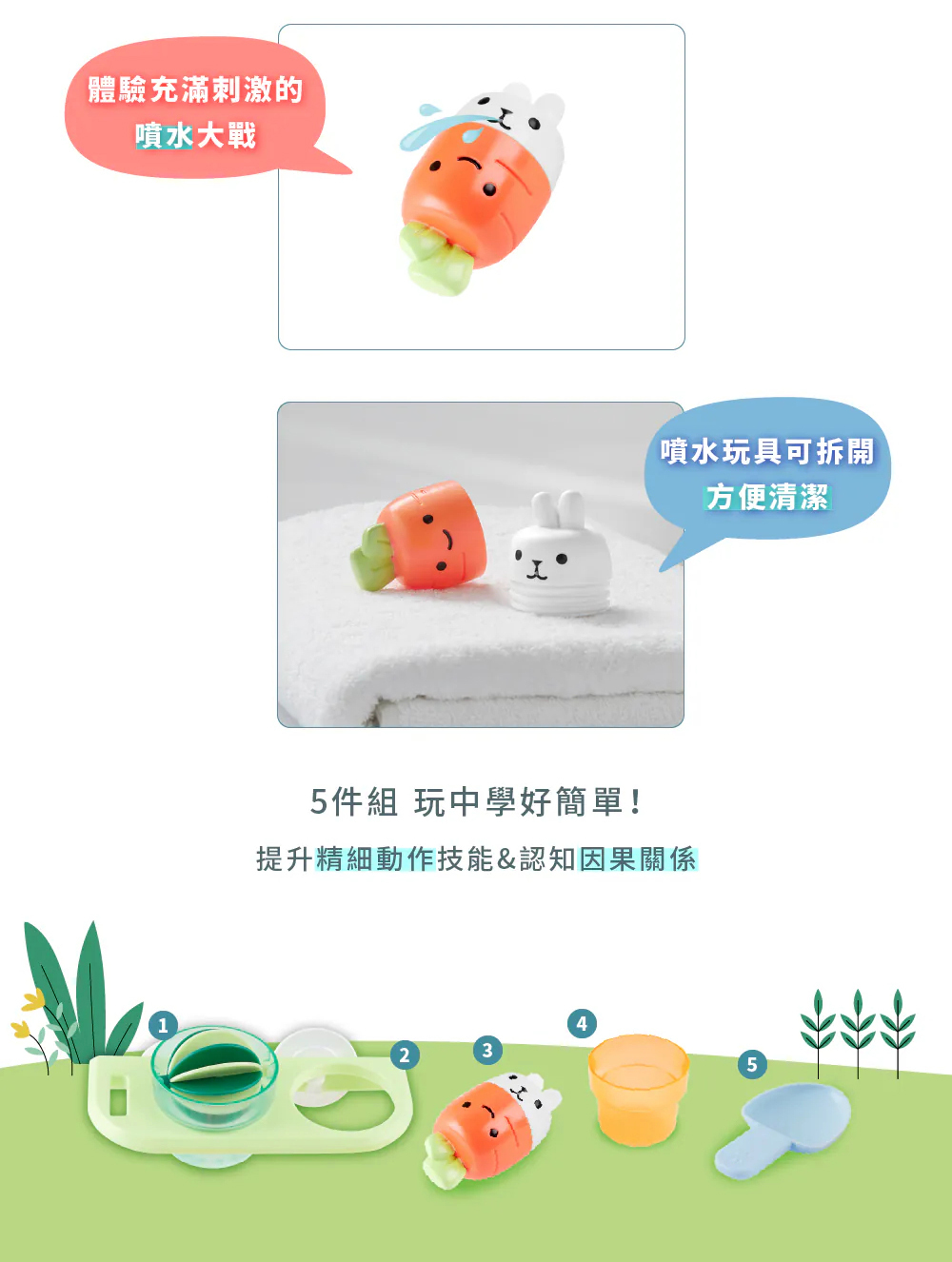 兔子/胡蘿蔔噴水玩具可拆開方便清潔並可混搭玩樂 |