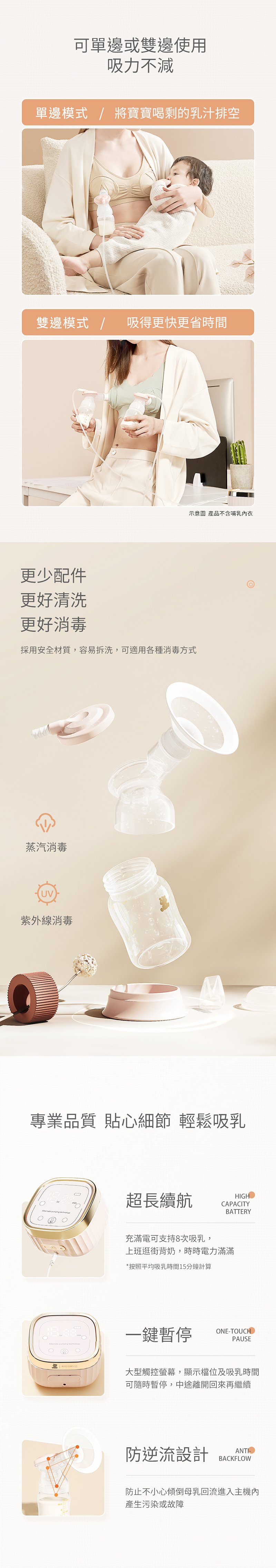 電池規格 ➤ 2500mA 18.5Wh 7.4V (滿電可雙邊吸乳8次)