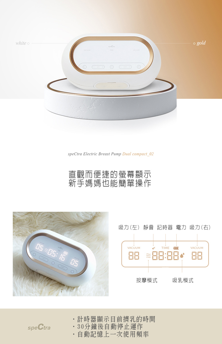 白色&金色的時尚設計,直觀而便捷的螢幕顯示