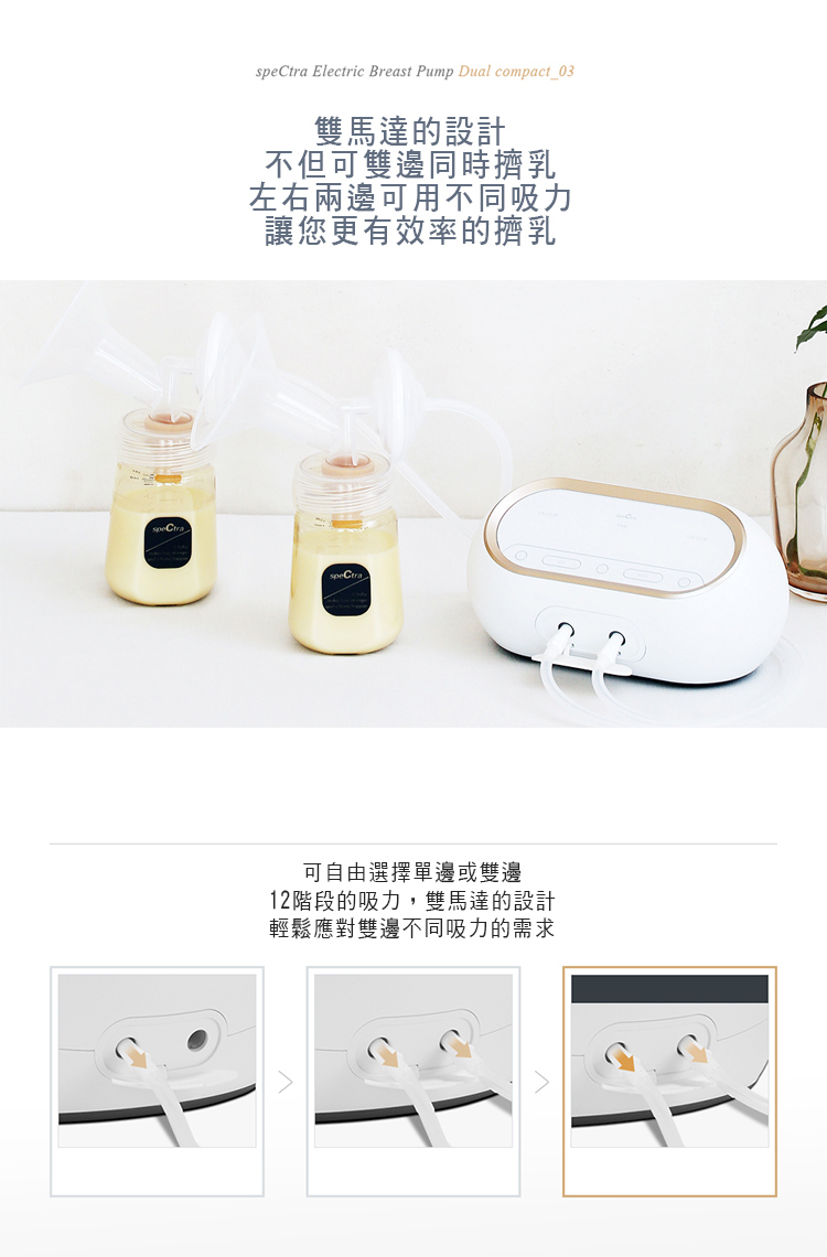 可雙邊同時使用不同吸力擠乳