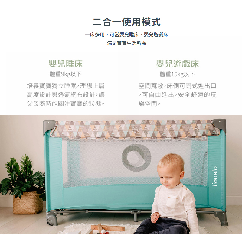 旅行嬰兒床/遊戲圍欄二合一模式 |
