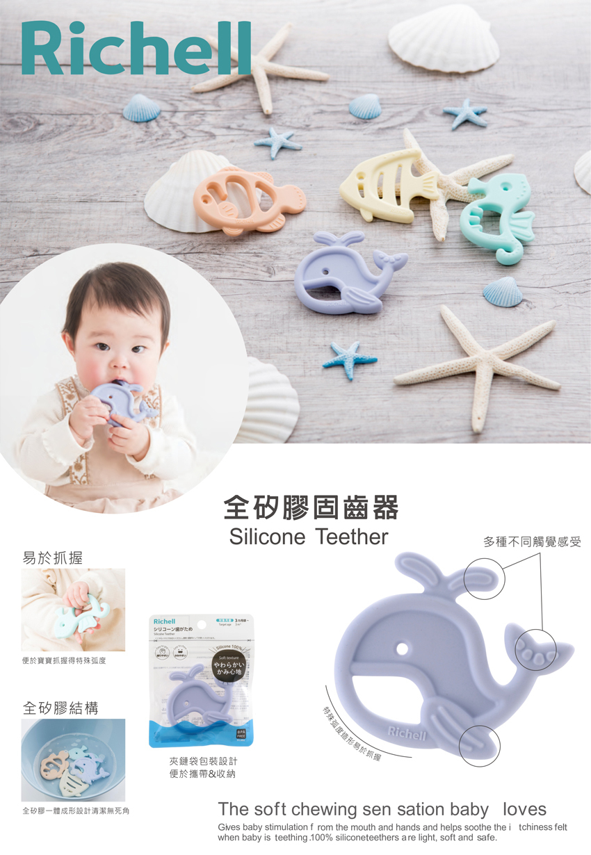 Richell矽膠寶寶固齒器,可愛海洋動物系列。