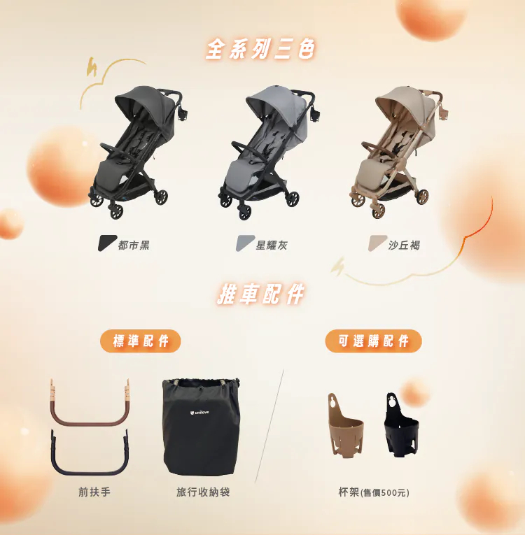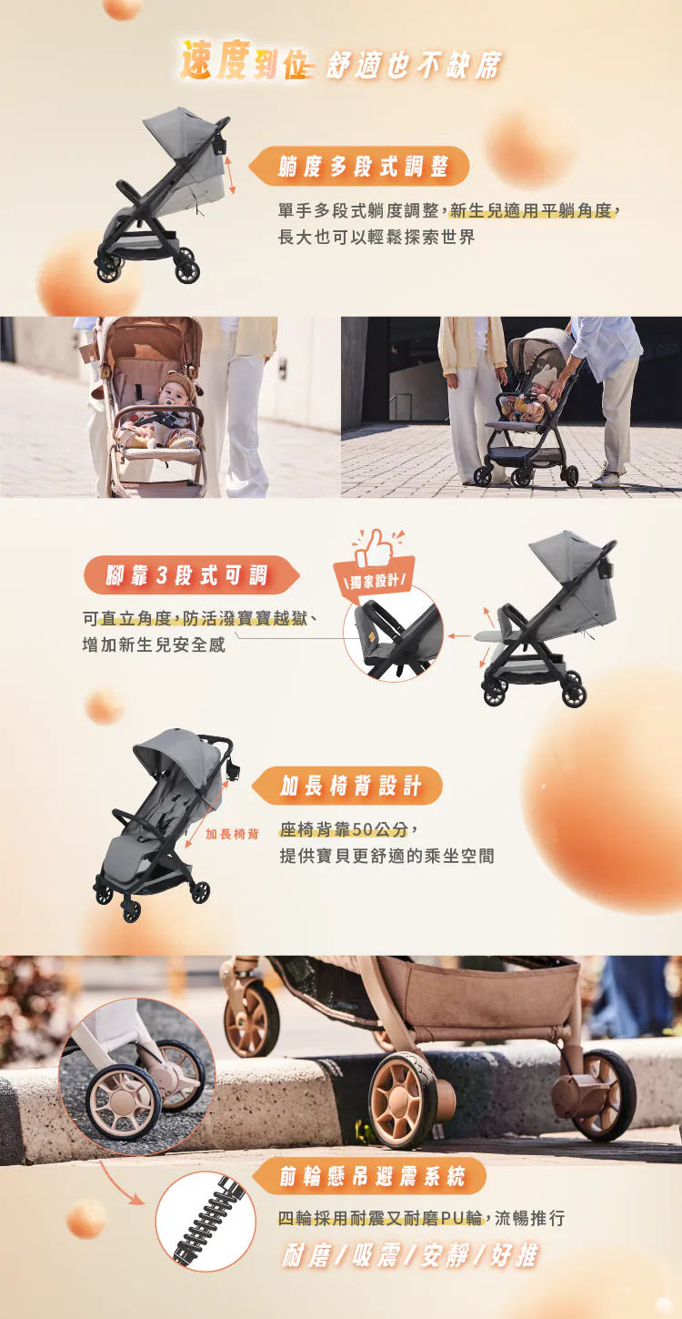懸吊避震結構,PU輪耐磨吸震、安靜好推 |