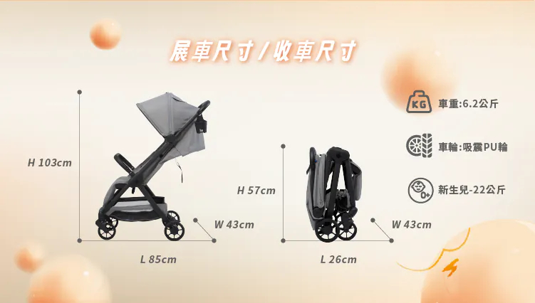 6.2輕量車體,單手按壓自動秒收並站立 |
