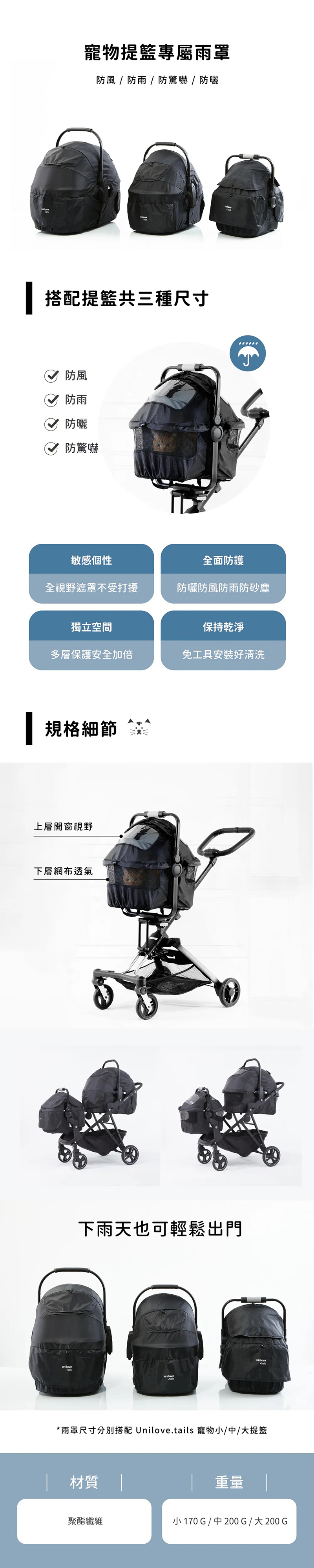《 Unilove.tails 寵物提籃雨罩 》