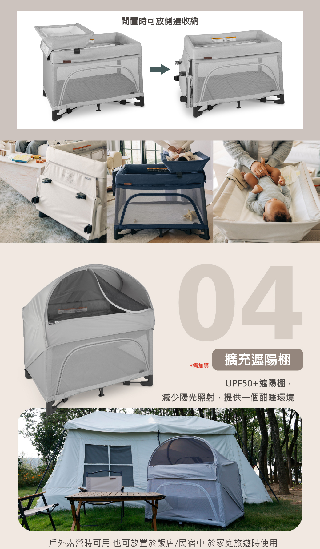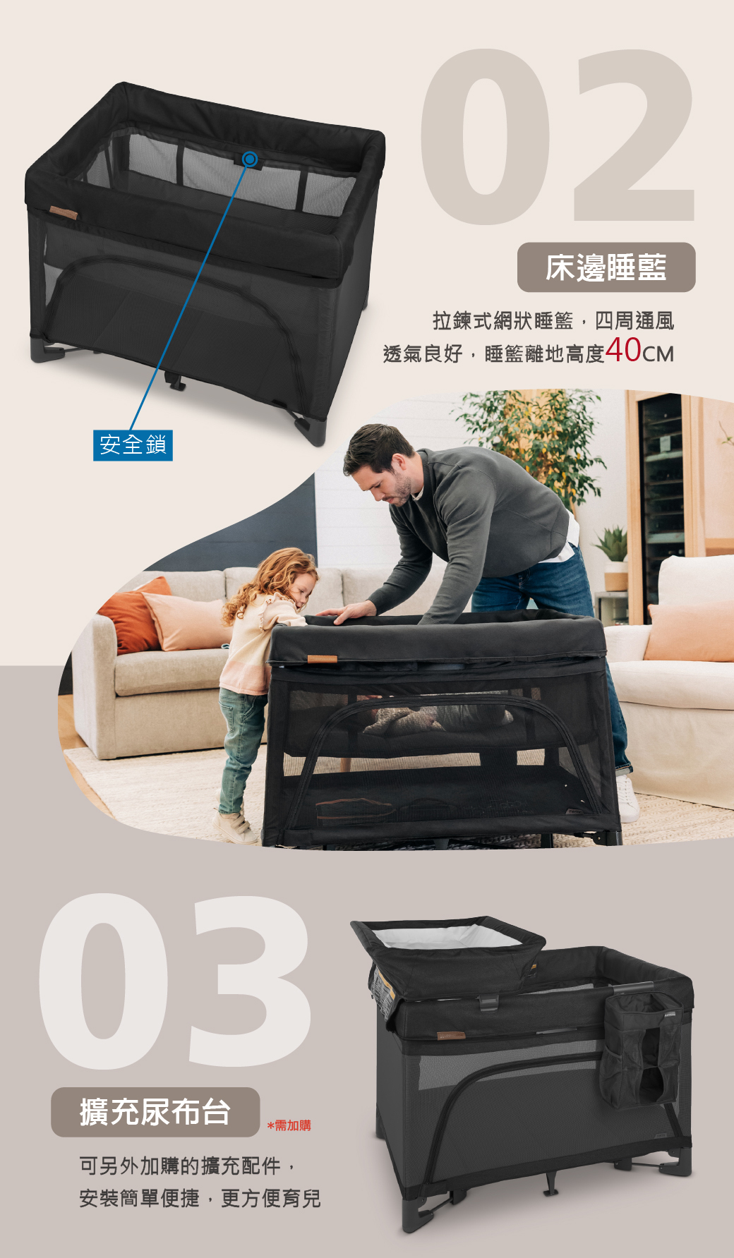 魔鬼氈貼合+底部固定扣設計,快速安裝在Remi多功能嬰兒床