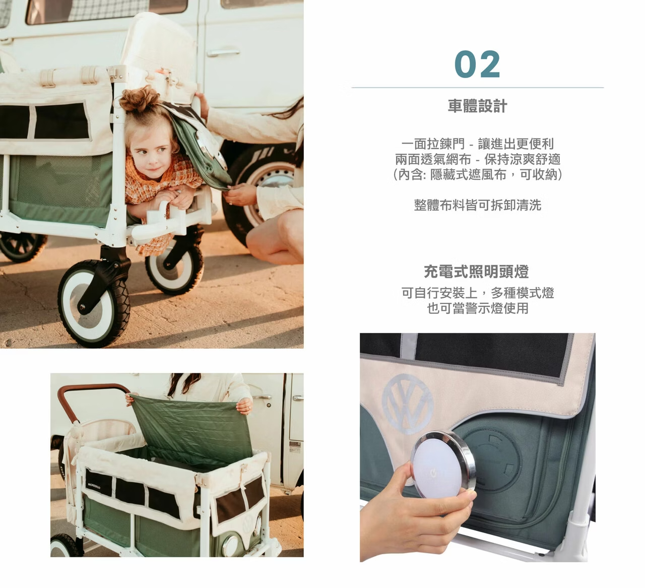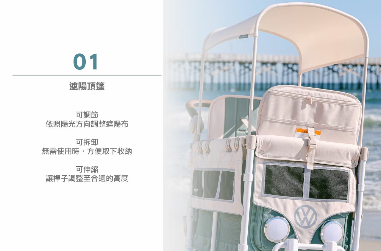 | ● | 可拆卸式加高座椅、遮陽頂棚,座椅可傾斜躺臥 |