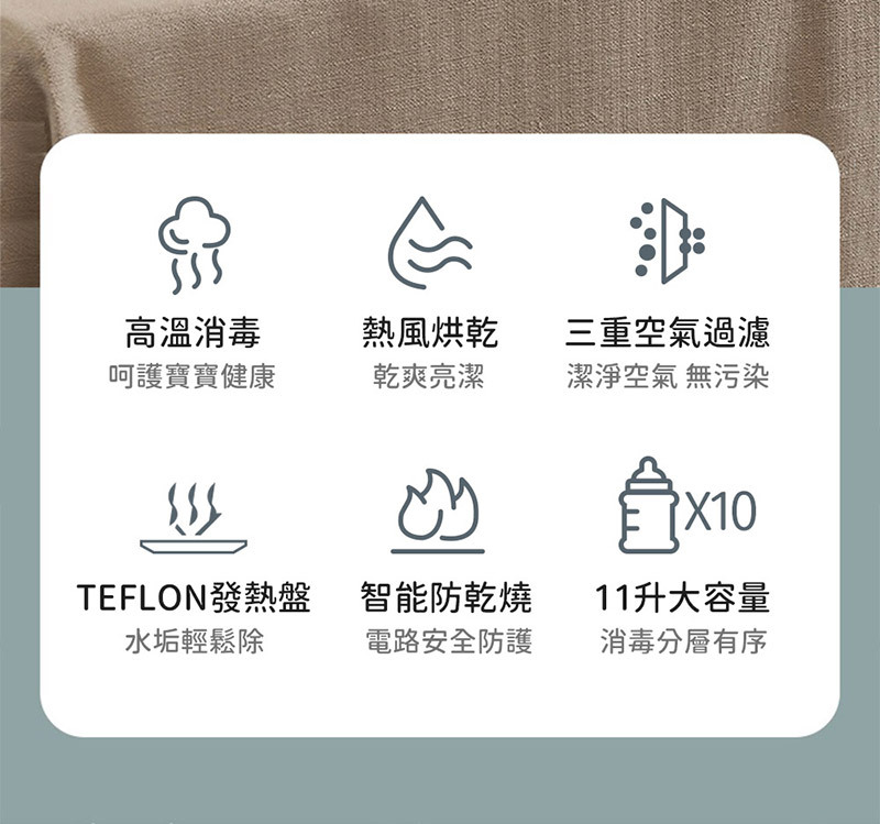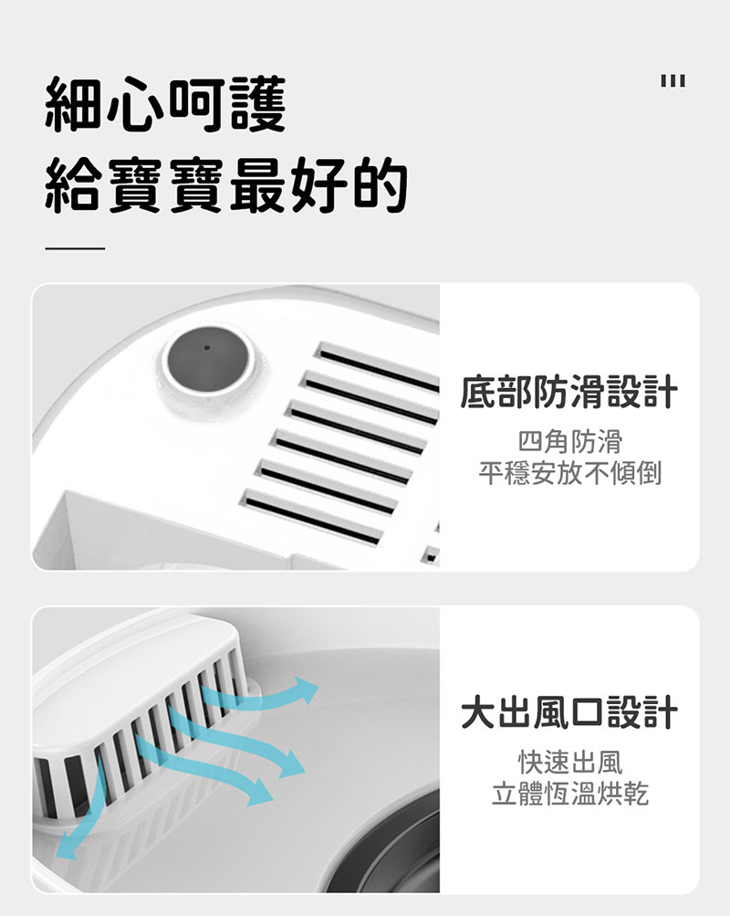 耐溫度   ➤ 上蓋提把:矽膠(-60~200℃)、奶嘴籃/奶瓶放置桶/主機:聚丙烯PP(-20~120℃)、觸控面板/底蓋:ABS(-20~80℃)