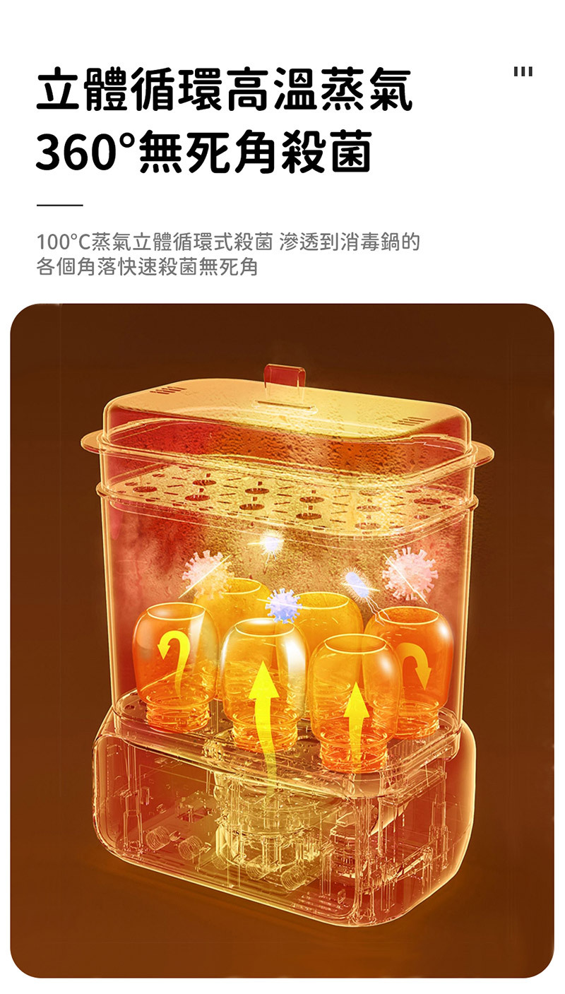 大出風口+立體循環高溫蒸氣,無死角殺菌