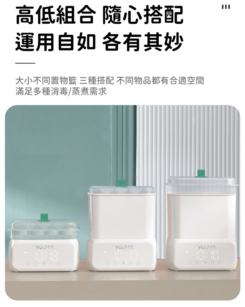 大小不同置物籃搭配,滿足消毒/蒸煮需求