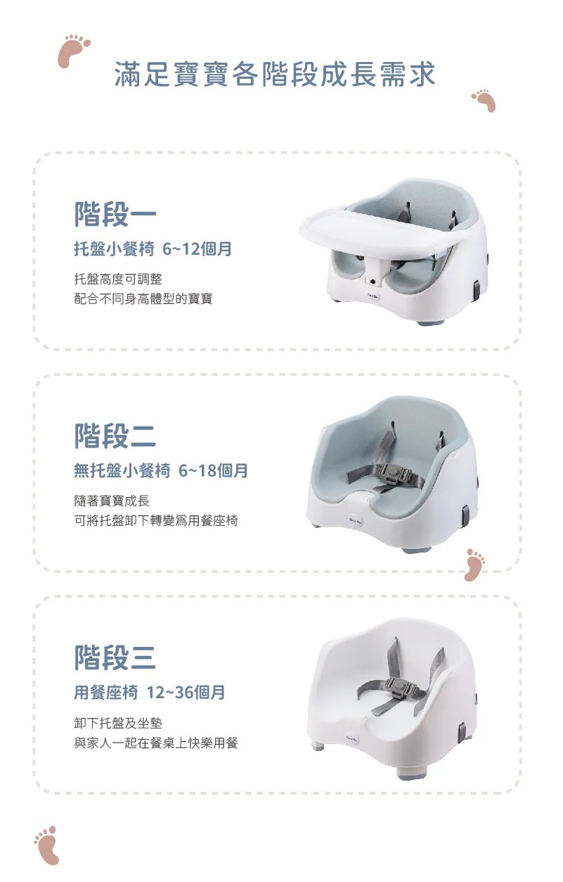 輕鬆安裝,與大人共桌餵哺,滿足寶寶各階段成長需求。