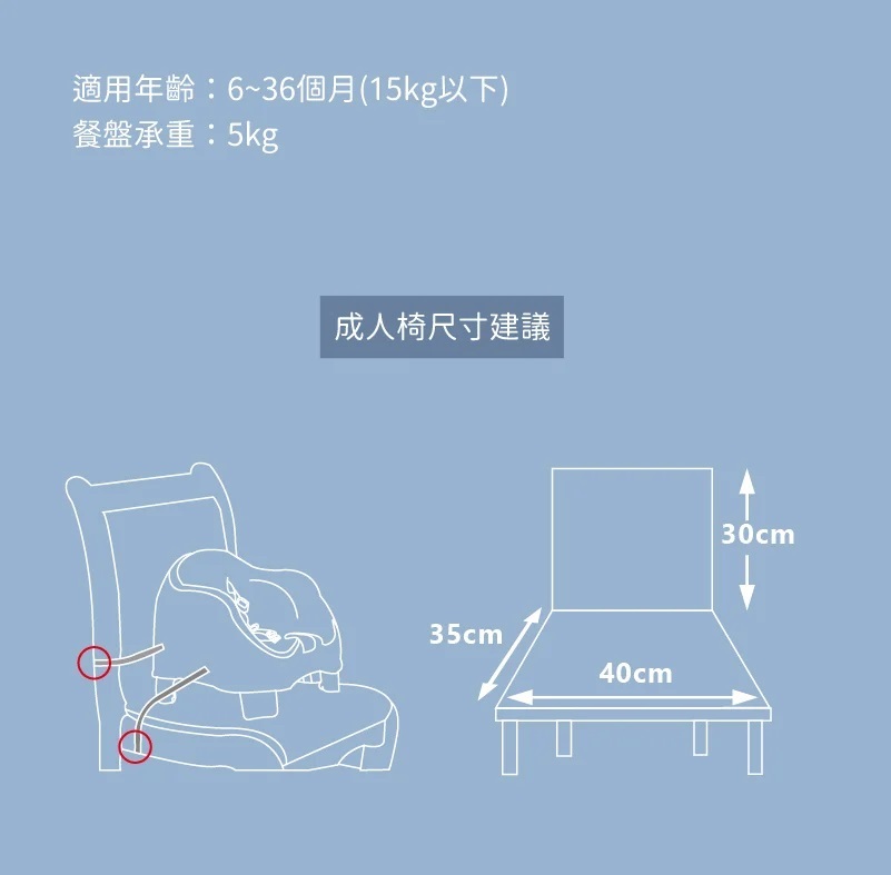 適用年齡  ➤ 6~36個月(能自行坐立) / 15kg以下