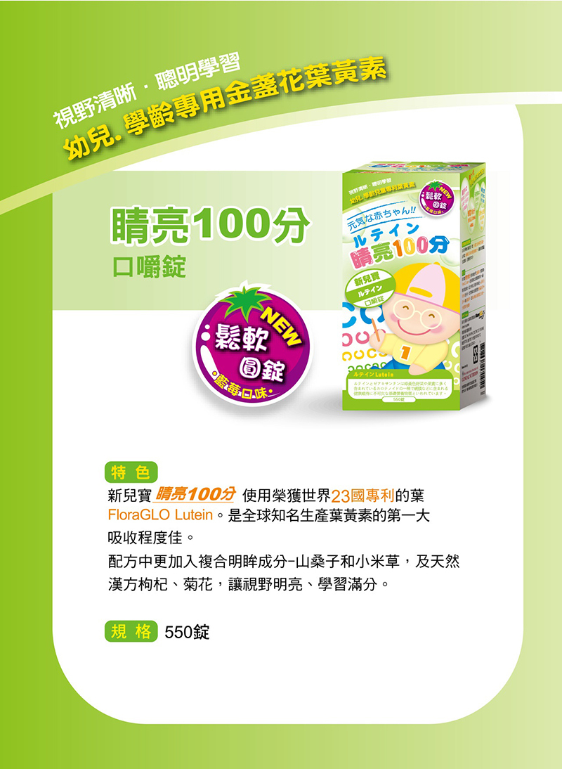 全球知名葉黃素的第一大廠生產,配方加入複合明眸成分,讓視野明亮、學習滿分。