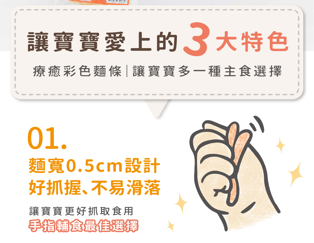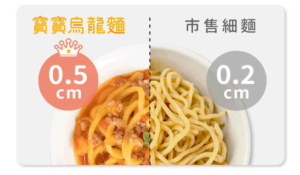 0.5cm麵條寬度設計,訓練寶寶小手靈活度 |