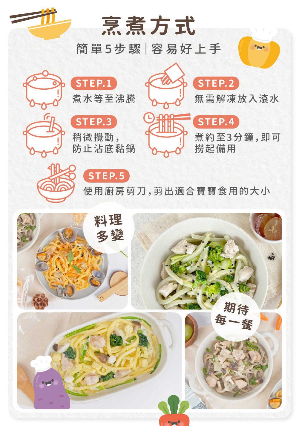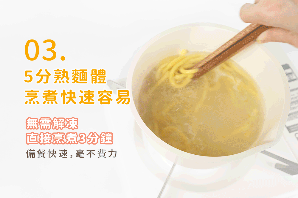 無需解凍,半熟麵體直接烹煮,3分鐘輕鬆上桌 |