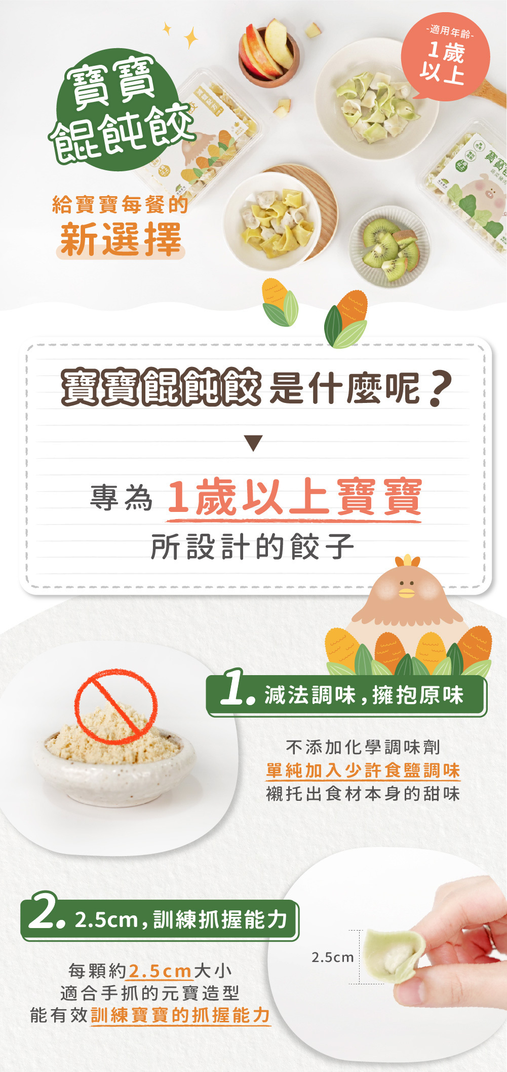 簡單調味,寶寶安心吃,無化學調味劑,吃得到食材本身的甜味,營養美味輕鬆上桌。