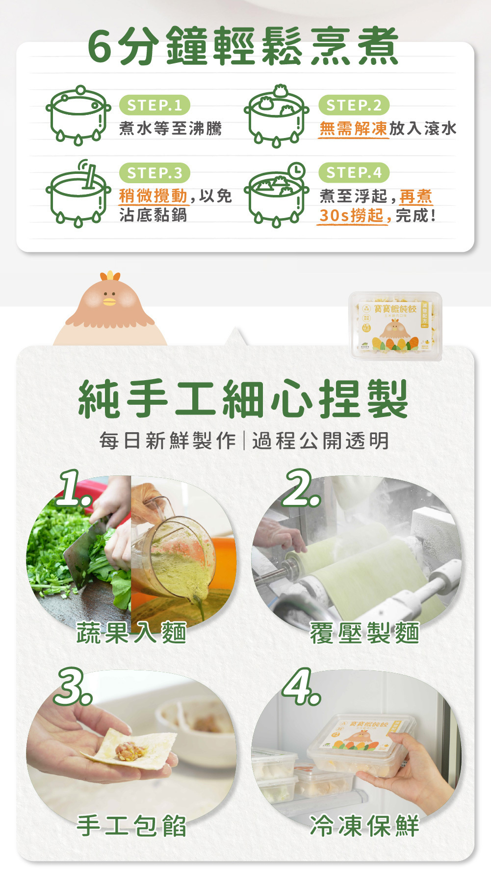 無需解凍,直接烹煮6分鐘,備餐好輕鬆 |
