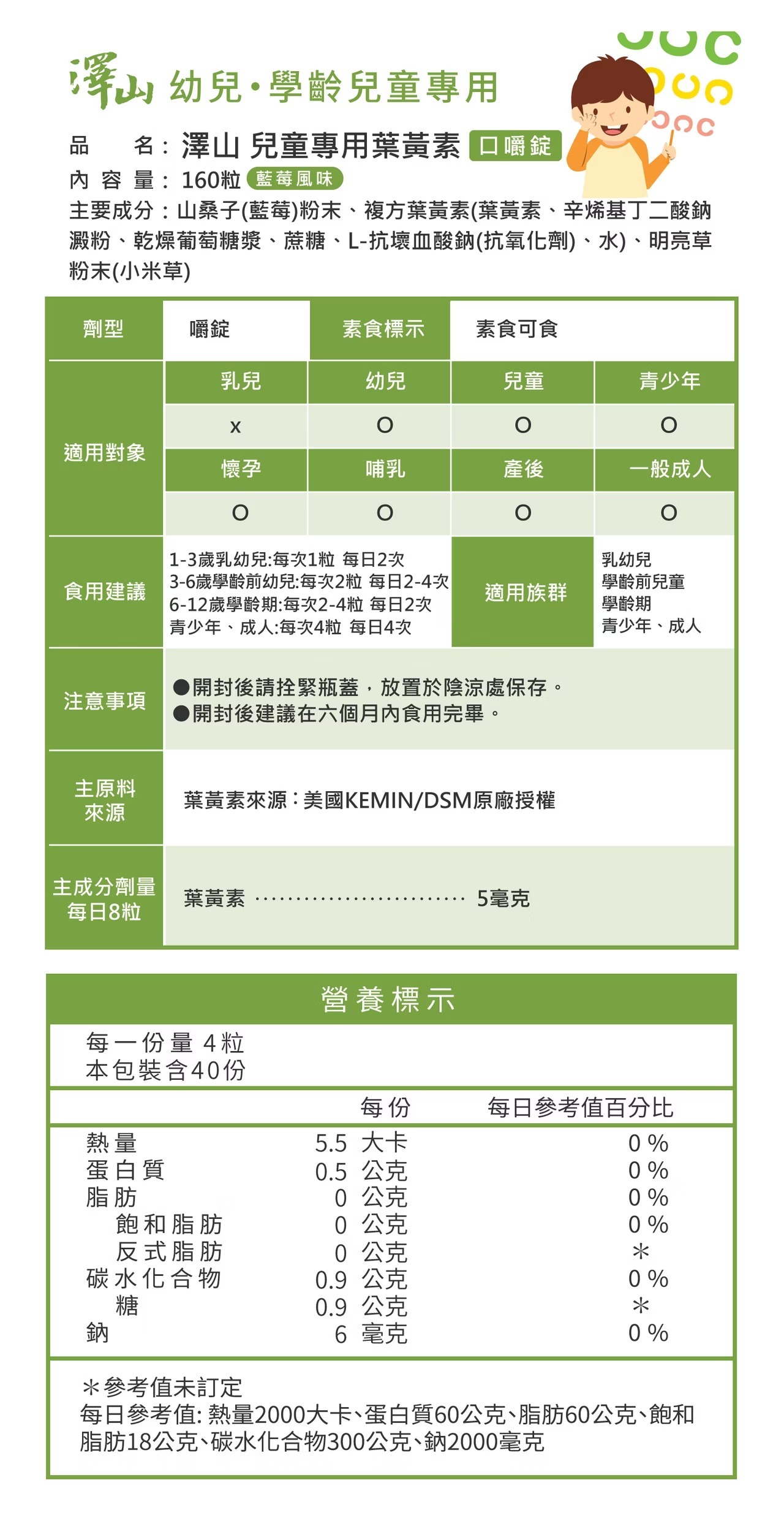 《 澤山 兒童專用葉黃素 口嚼錠 》