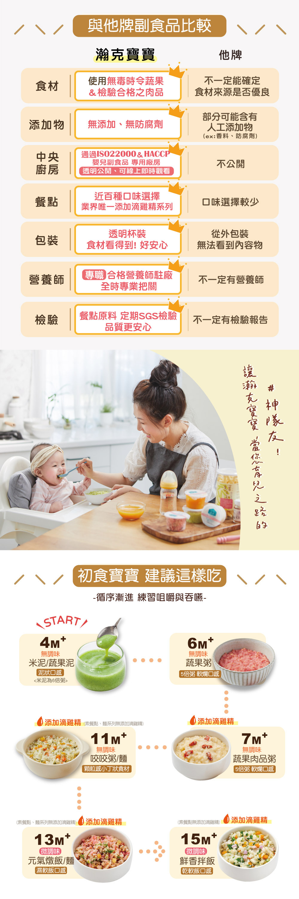 適合四個月以上寶寶米泥、蔬果泥 天然無添加、無香料、色素等人工化學物及防腐劑 |