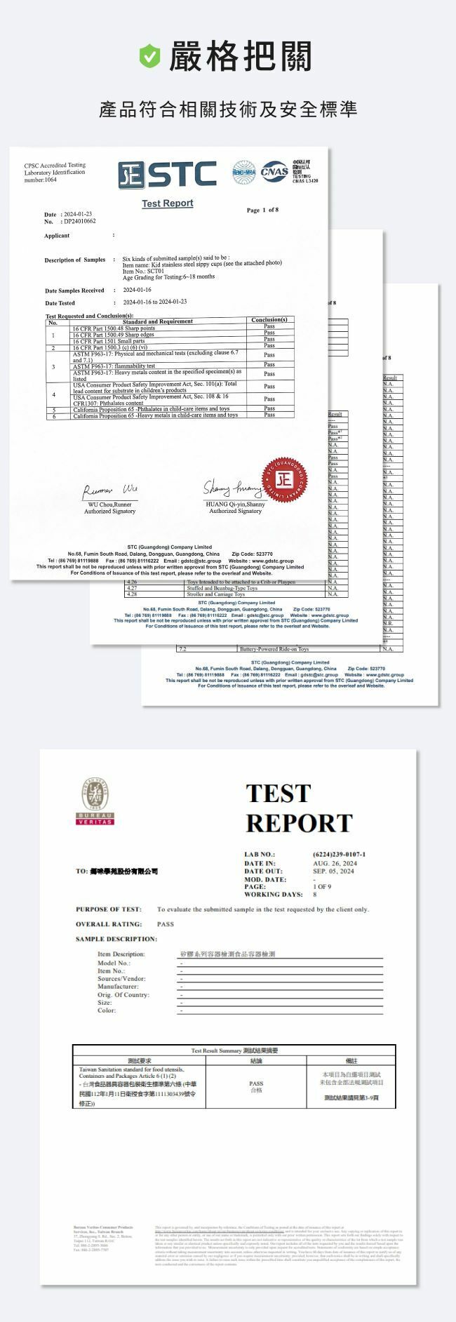 通過CPSIA 美國消費品安全委員會、必維集團(Bureau Veritas) | |