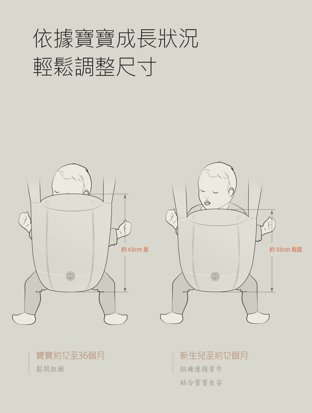 讓您輕鬆帶著寶寶外出!適用於0到36個月的寶寶,最大承重15公斤,新生兒時期就能開始使用。