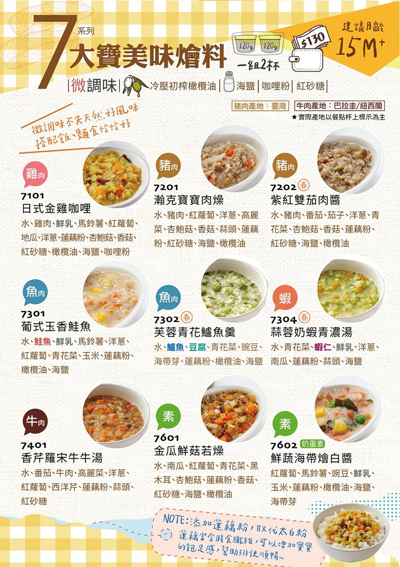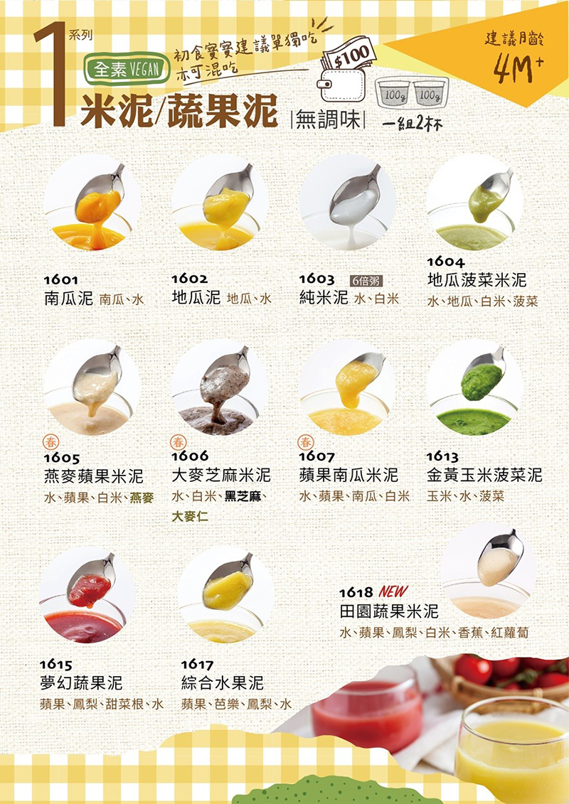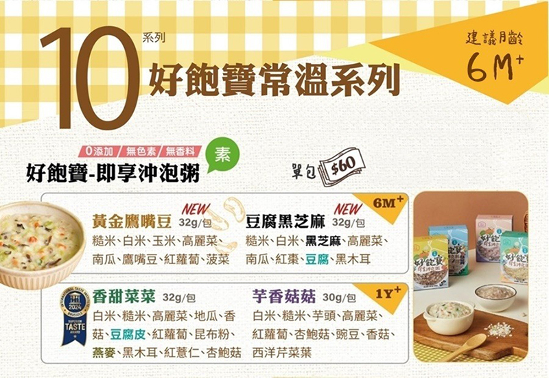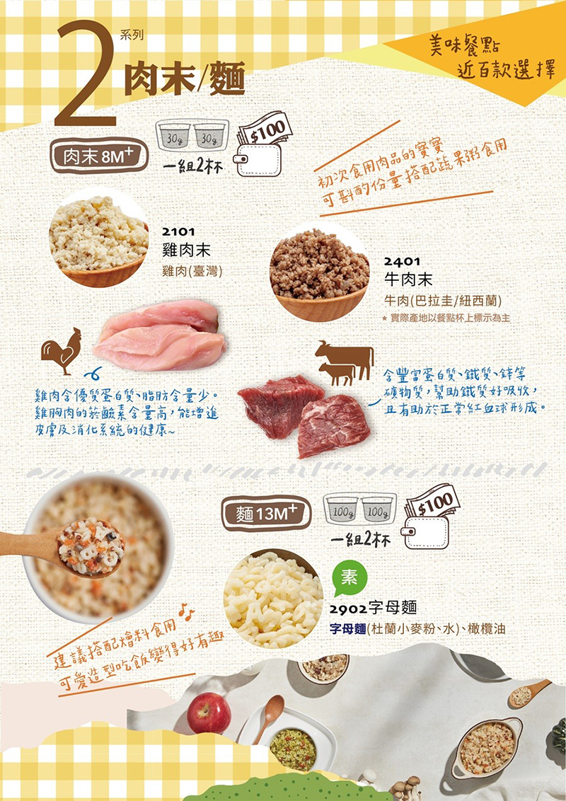 超過百款嬰幼兒副食品,分齡設計提供不同月齡階段寶寶食用