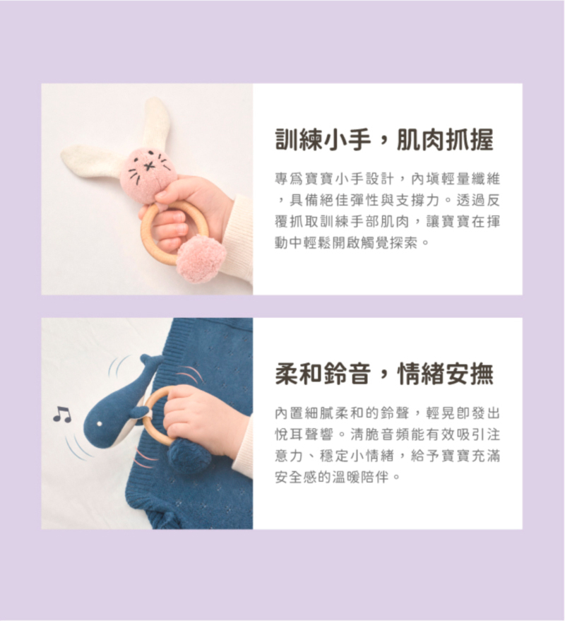 手搖鈴輕盈好抓握,適合嬰兒小手