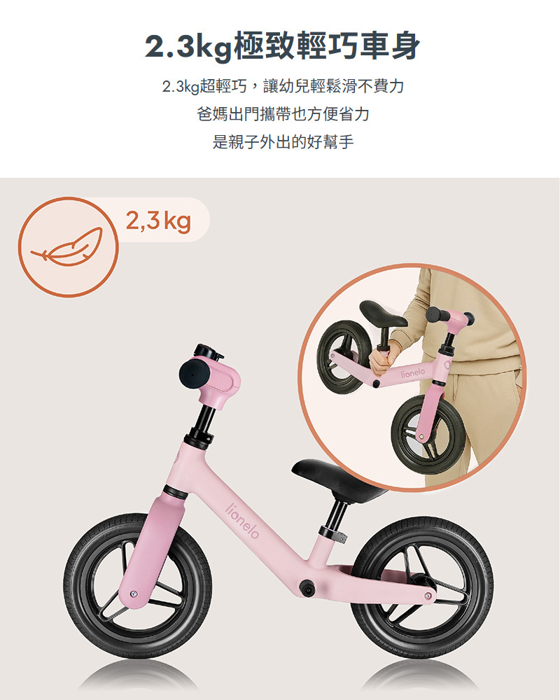 2.3kg超輕量,孩子輕鬆騎行,爸媽也能單手提 |